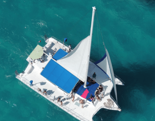Sail on Caribbean waters towards Isla Mujeres and enjoy refreshing drinks while you marvel at the exquisite tones created by the crystal clear waters of the bay.
